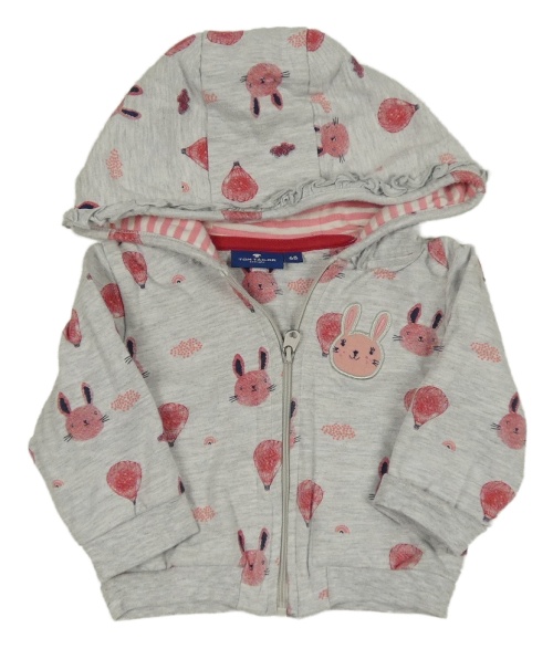 Šedá melírovaná propínací mikina s králíky a kapucí Tom Tailor