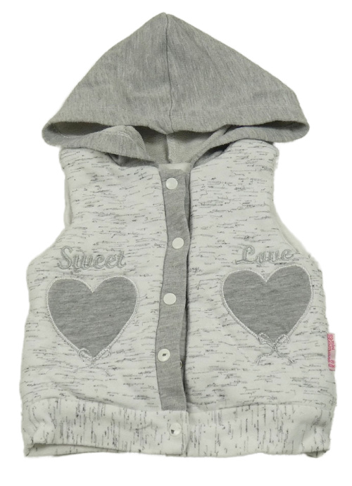 Bílo-šedá melírovaná tepláková lehce zateplená vesta s kapucí