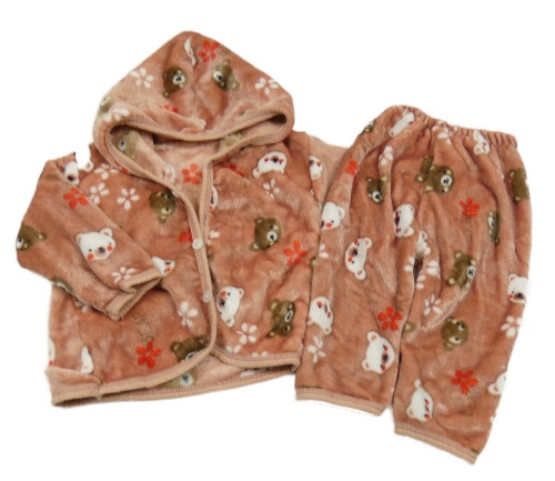 2 set - starorůžová plyšová propínací mikina s medvědy a kapucí + tepláky