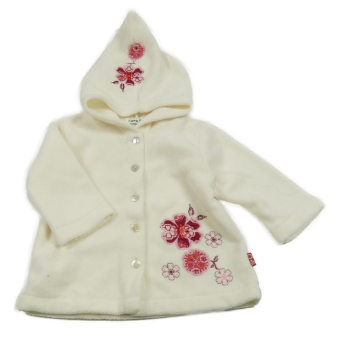 Bílá fleecová propínací mikina s kytičkou a kapucí Name it