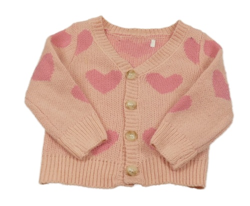 Růžový propínací svetr se srdíčky