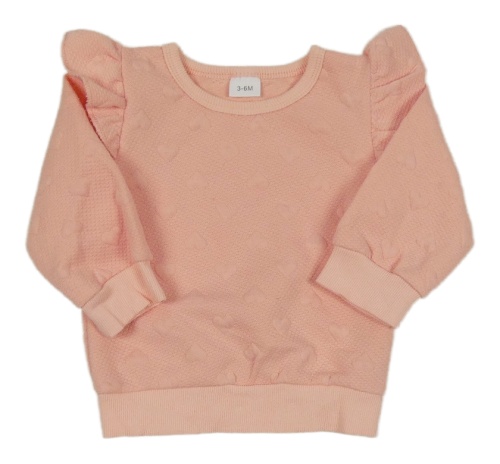 Světlerůžová strukturovaná mikina se srdíčky a volánky
