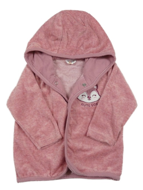 Růžová sametová propínací mikina s liškou a kapucí Orsolino