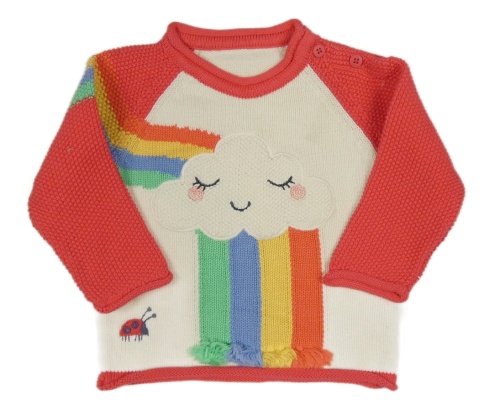 Smetanovo-jahodový svetr s mrakem a duhou Nutmeg