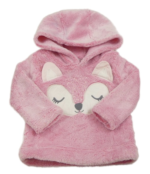 Světlerůžová chlupatá mikina s liškou a kapucí George