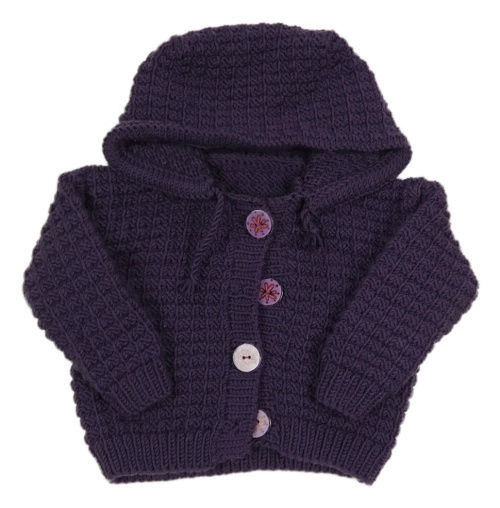 Švestkový propínací svetr s kapucí