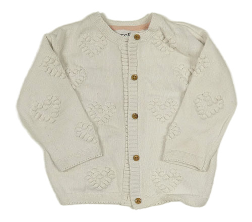 Bílý propínací svetr se srdíčky z bambulek F&F