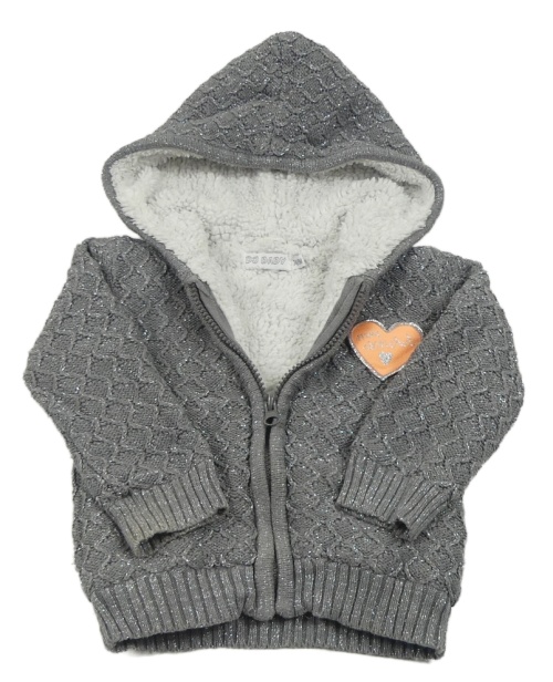 Šedý třpytivý zateplený propínací svetr s kapucí
