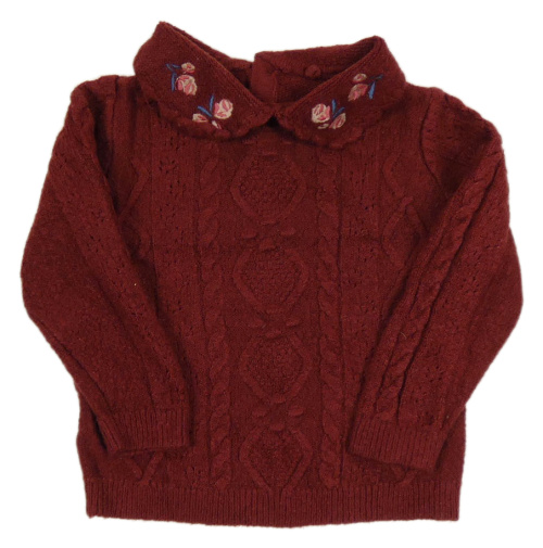Mahagonový vzorovaný svetr s límečkem a výšivkou Tu