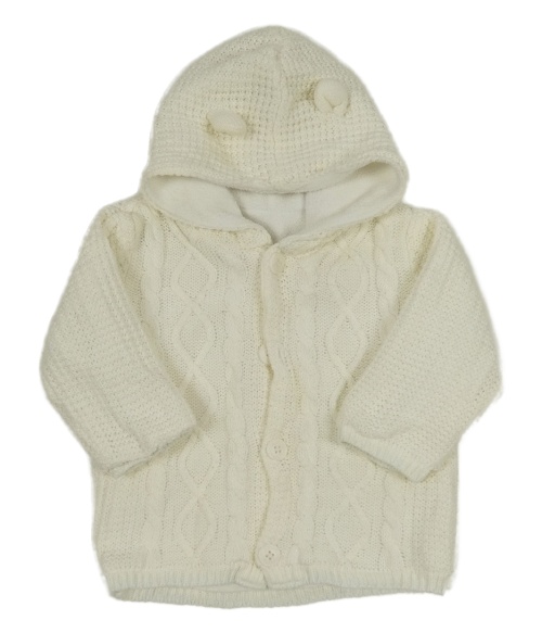 Smetanový vzorovaný propínací podšitý svetr s kapucí George