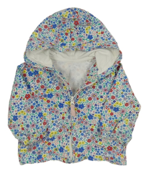 Bílo-barevná květovaná propínací mikina s kapucí Miniclub