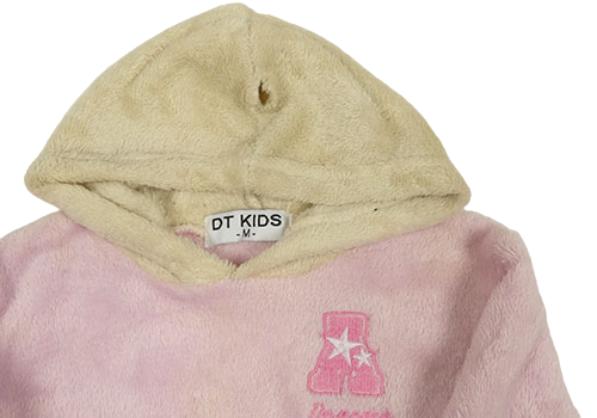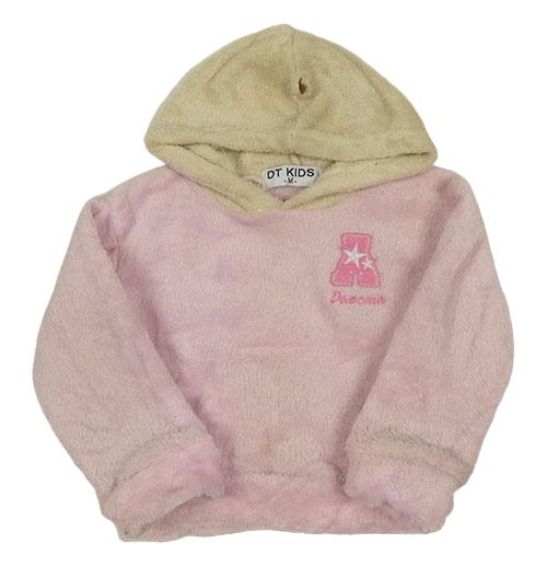Růžovo-béžová chlupatá mikina s písmenem a kapucí