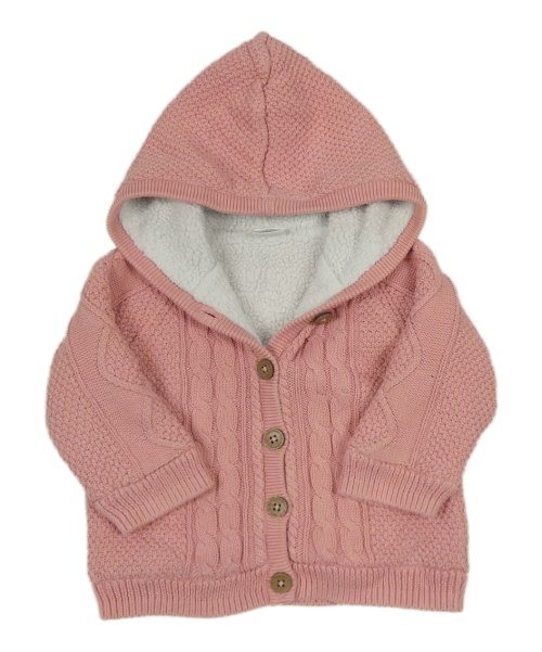 Růžový vzorovaný propínací zateplený svetr s kapucí Next