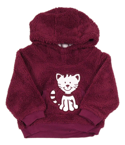 Vínová huňatá mikina s kočičkou a kapsou a kapucí BERTI