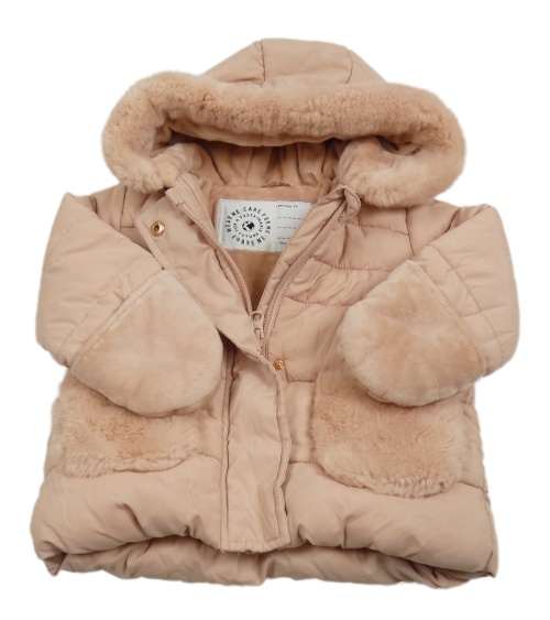 Světlerůžová šusťáková zimní bunda s chlupatými kapsami a kapucí George