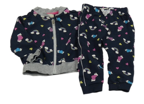2set- tmavomodrá propínací mikina se srdíčky a duhami + tepláky