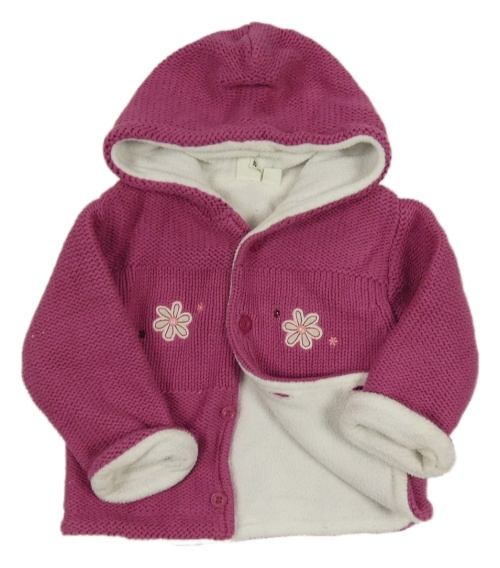 Fuchsiový zateplený propínací svetr s květy a kapubí Bob der Bär