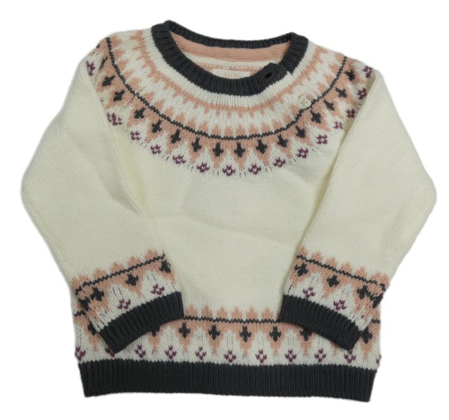 Smetanovo-starorůžovo-tmavošedý pletený svetr se vzorem C&A