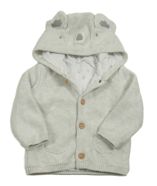Šedý propínací podšitý svetr s medvídkem a kapucí Mothercare