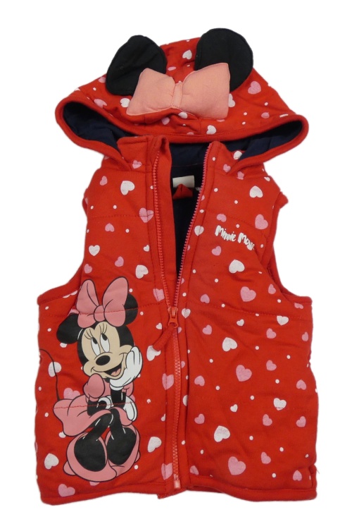 ČErvená bavlněná zateplená vesta se srdíčky, Minnií a kapucí Disney