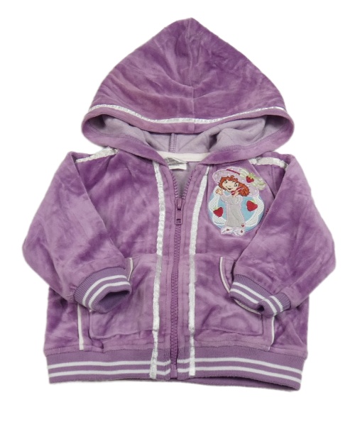 Fialová sametová propínací mikina se Šarlotou a pruhy a kapucí