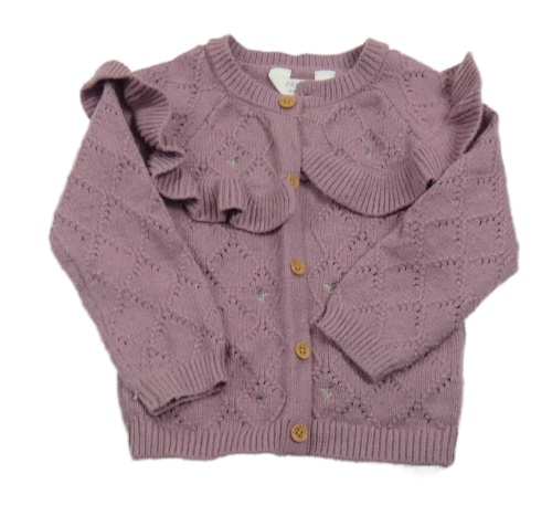 Fialový propínací svetr s volánkem a kytičkami Primark