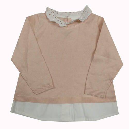 Růžový svetr s límečkem s madeirou a halenkou H&M