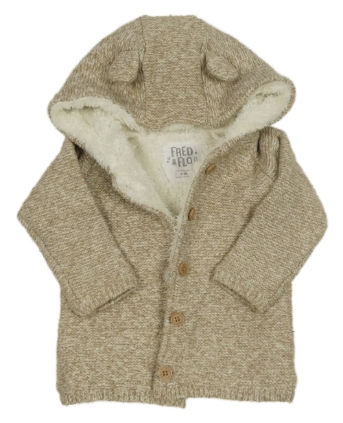 Hnědý melírovaný zateplený propínací svetr s kapucí F&F