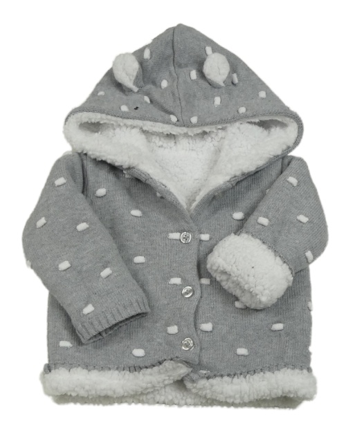 Šedý 3D puntíkatý zateplený propínací svetr s kapucí Matalan