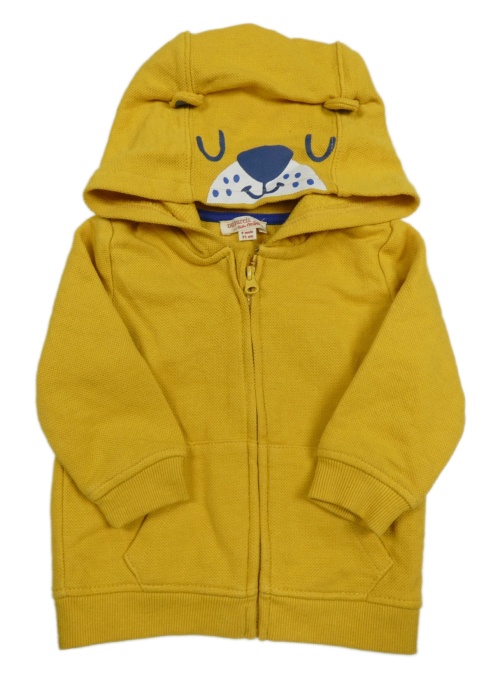 Žlutá propínací mikina s medvídkem a kapucí