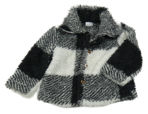 Bílo-černá kostkovaná chlupatá propínací mikina s límečkem
