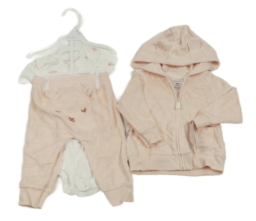 • Nový - 3Set - Světlerůžová froté propínací mikina s kapucí + tepláky + bílé body s ovečkami Carter's