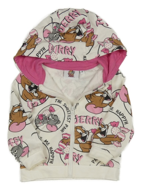 Smetanová vzorovaná propínací mikina s Tomem a Jerrym a kapucí