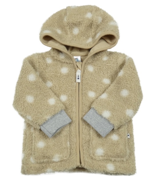 Béžovo-bílá puntíkatá huňatá propínací mikina s kapucí Topomini