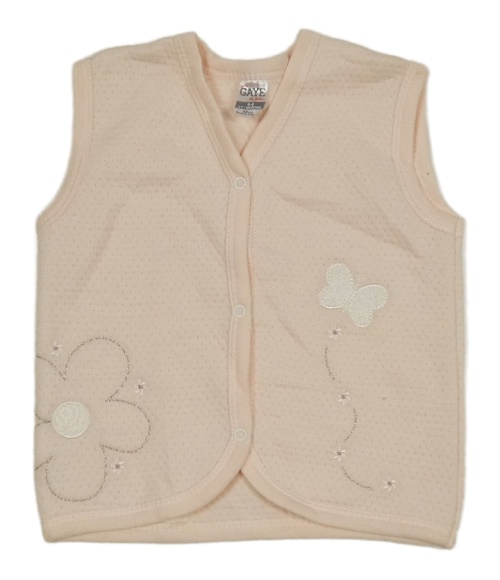 Světlebroskvová vzorovaná propínací vesta s květem a motýlkem