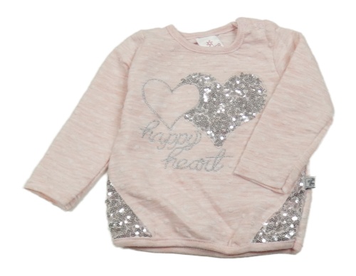 Světlerůžovo-bílá melírovaná puntíkatá mikina se srdíčky a flitry a nápisy bebico