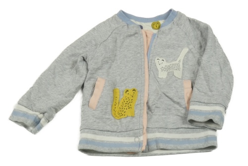 Šedá melírovaná propínací oboustranná mikina s leopardy Miniclub