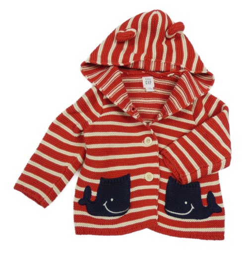 • Červeno-bílý pruhovaný propínací svetr s velrybami a kapucí GAP