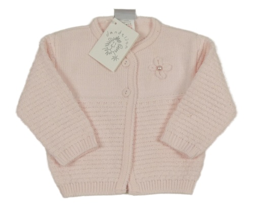 Nové - Světlerůžový propínací svetr s květinou Dandelion