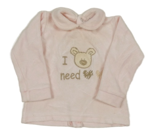 Světlerůžová sametová mikina s medvídkem a límečkem Zippy
