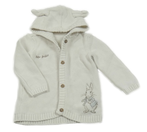 Smetanový propínací svetr s králíkem a kapucí - Králíček Petr George
