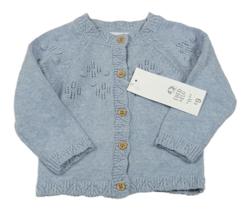 Nové - světlemodrý melírovaný propínací svetr s perforovaným vzorem a kapucí F&F