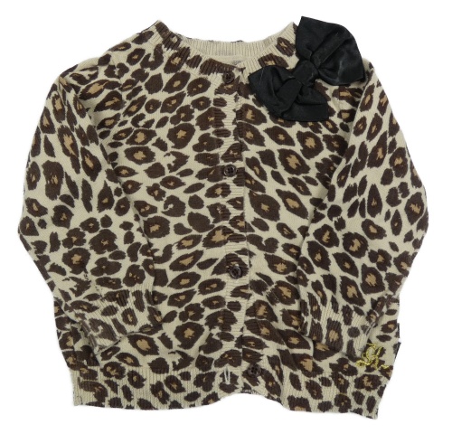 Hnědo -béžový vzorovaný propínací svetr s mašlí