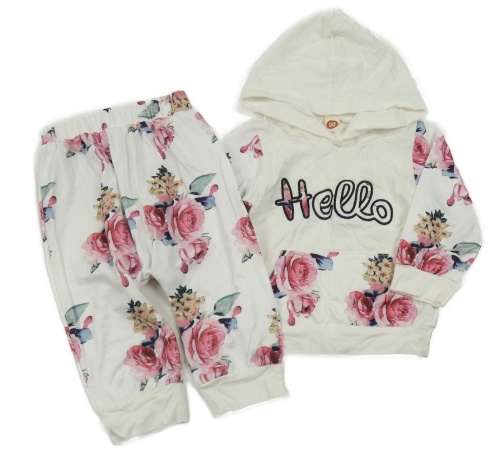 2 set - Bílá květovaná lehká mikina s kapucí + tepláky