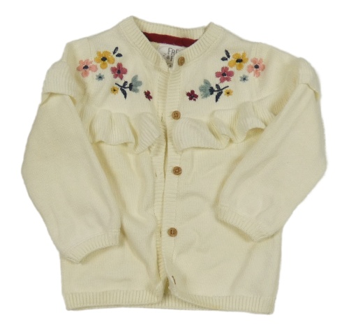 Smetanový propínací svetr s kytičkami a volánky F&F