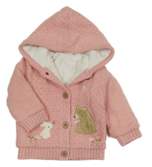 Růžový zateplený propínací svetr s medvědem a kapucí Nutmeg