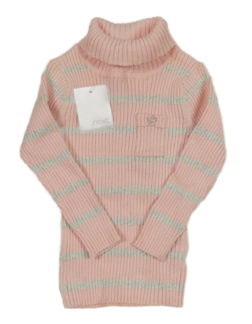 Nové - světlerůžovo/šedo/stříbrný pruhovaný žebrovaný svetrový rolák s kapsou Next