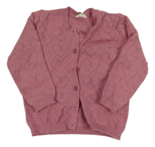 Starorůžový úpletový propínací svetr s perforovanými srdíčky Benetton