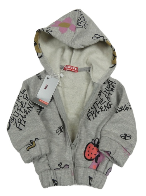 Nové - Šedá propínací mikina s nápisy a kapucí