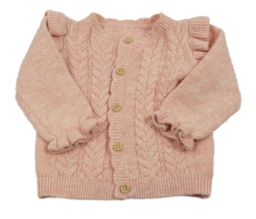 Světlerůžový melírovaný propínací svetr se vzorem a volánky Matalan